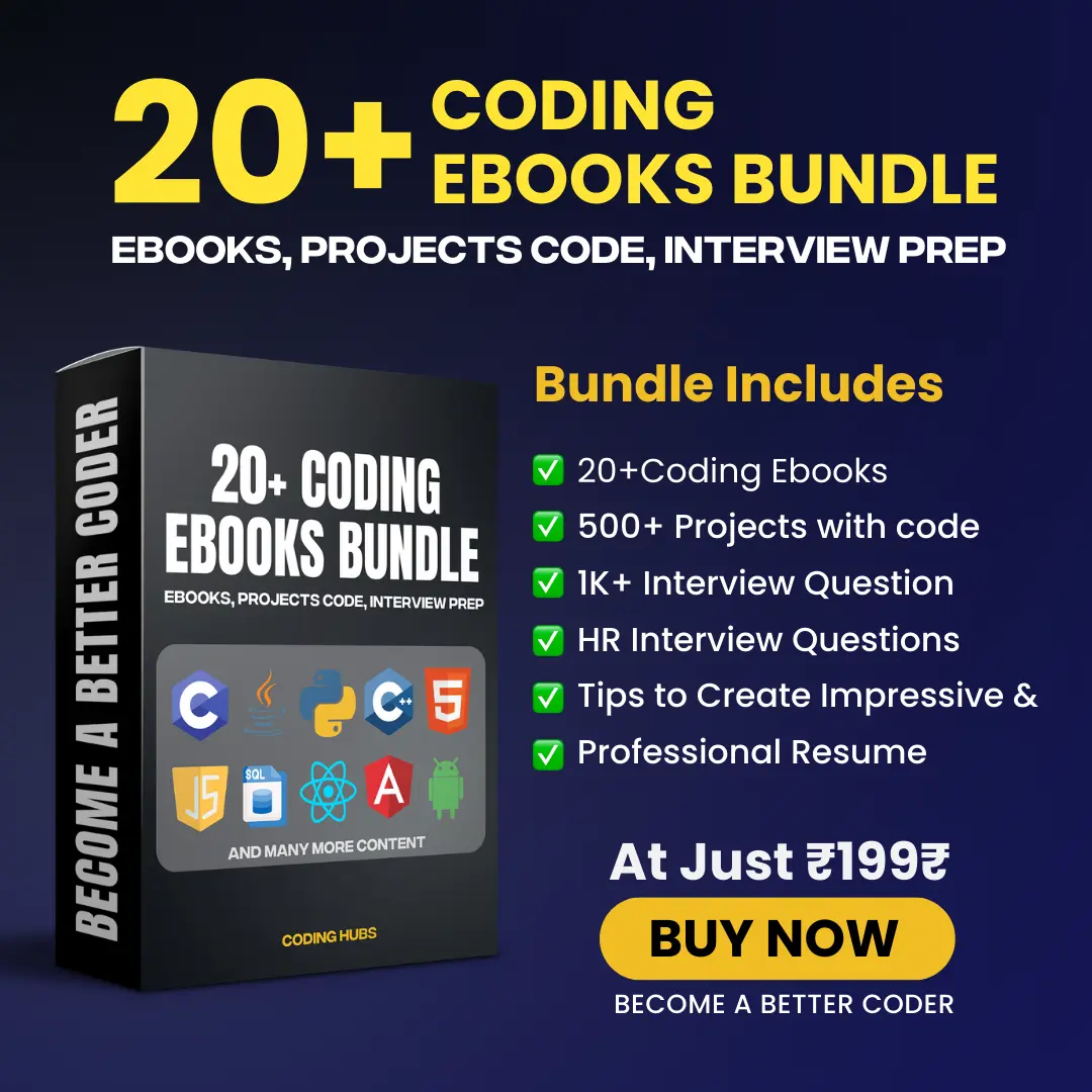 ✅ 20+ Coding eBooks – Learn programming languages like C, C++, Python, Java, HTML, CSS, JavaScript, SQL, React, Angular, and more. 📚